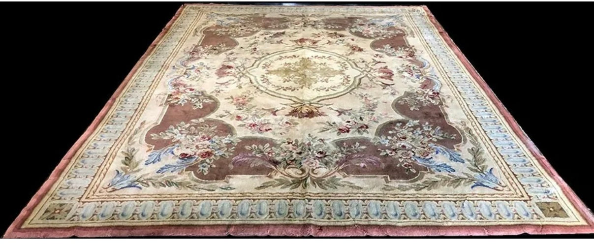 | In a former Parisian soap factory known as the Savonnerie young orphans worked alongside artisan carpet weavers producing knotted pile rugs for the crown ruler’s palaces. Savonnerie carpets enjoyed tremendous popularity throughout the 17th century.In 1608 Henry IV better known as Henry the great commissioned DuPont and his apprentice Simon Lourdes to produce carpets from a workshop in the Louvre the weaving team quickly outgrew the Louvre studio instigating a move to the larger Savonnerie factory in the suburbs of Paris although the first Savonnerie carpets imitated Persian designs themes quickly changed to reflect French baroque neoclassical and rococo elements such as architectural framed medallions dense bouquets and elaborate scrolls that were more fitting with the typical French style of the Louvre palace and Versailles under the rule of Louis XIV the Savonnerie factory and style thrived. At the height of the Savonnerie movement a large staff of interns journeymen and successful designers were employed and housed by the royal factory.However royal finances the French revolution and the invention of steam powered looms led to the demise of the legendary Savonnerie factory. Before the Savonnerie was established France imported the majority of their rugs from the ottoman empire through the Franco ottoman alliance and trade agreements. Master weaver Pierre DuPont who had just returned from a trip to the Levant and the eastern Mediterranean region including Iraq, Jordan, Lebanon and Syria believed he could refine tribal rug designs from the Levant to suit the refined taste of the French court. This was a brief history of French Savanerrie rugs. Now, the one that I am offering here, could be the best example of what a true antique French Savanerries should look like, We don't find pieces like this very often, specially at this condition. This has been in my private collection & never had any intention to sell it because I had a plan for it but changed my mind. Now, someone else could have a chance to own this phenomenal Savanerrie. Remember, there are other Savanerries out there, some made in Spain, Austria, and many post 1900, which, none of them even come close to this. I bought this from an auction in Belgium in 1994, & psid very good money, more than the price that I am offering here, If you have a room for this rug & you think that could go with your decoration, don't wait because you moght not to find another one like it. It measures 9’-7” x 13’ and is made of wool on burlap foundation . |